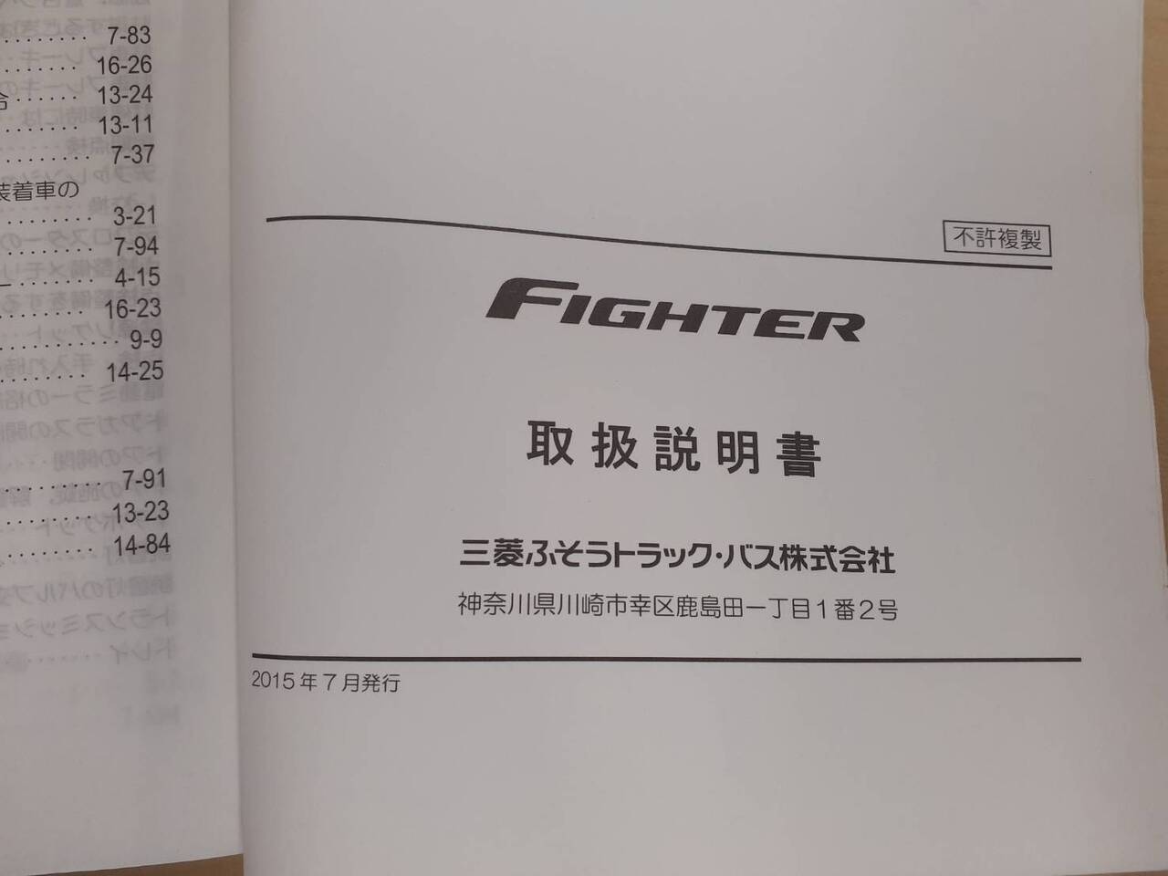 三菱ふそう ファイター MH995977 取扱説明書