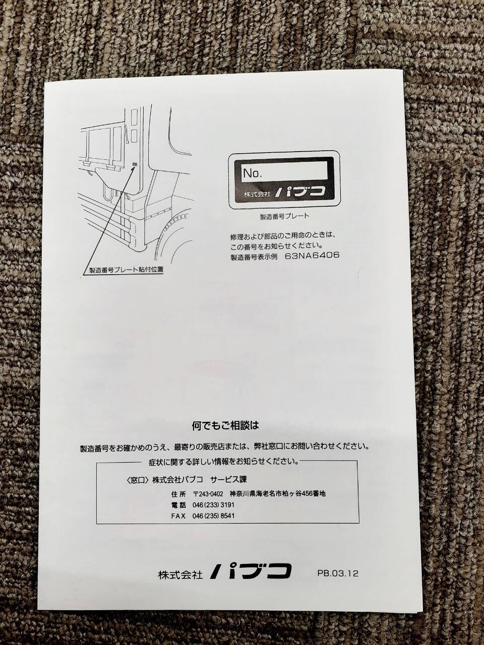 パブコ ボデー 取扱説明書(共通編)(中古)