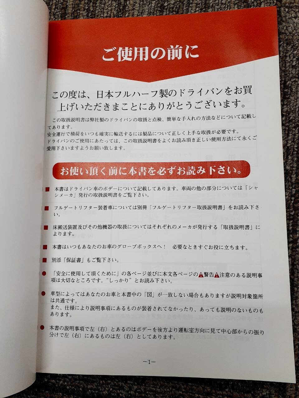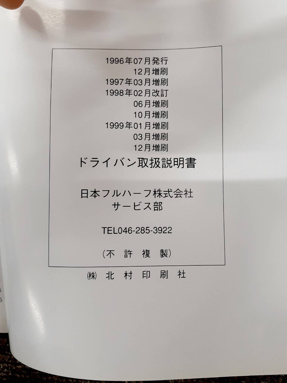 日本フルハーフ ドライバン 取扱説明書(中古)