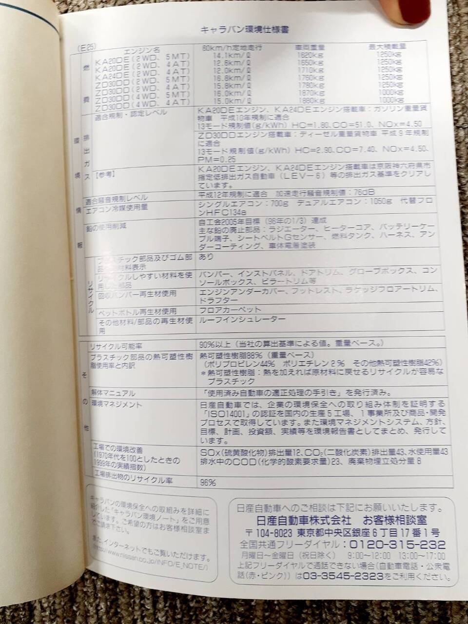 日産 CARAVAN 取扱説明書(中古)