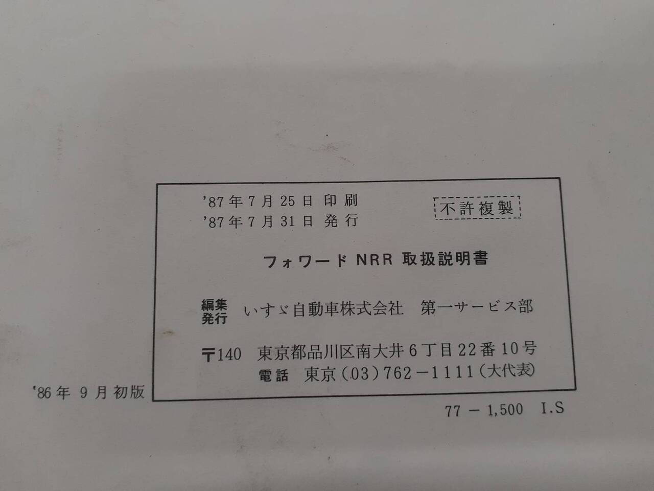 いすゞ フォワードジャストン 取扱説明書(中古)