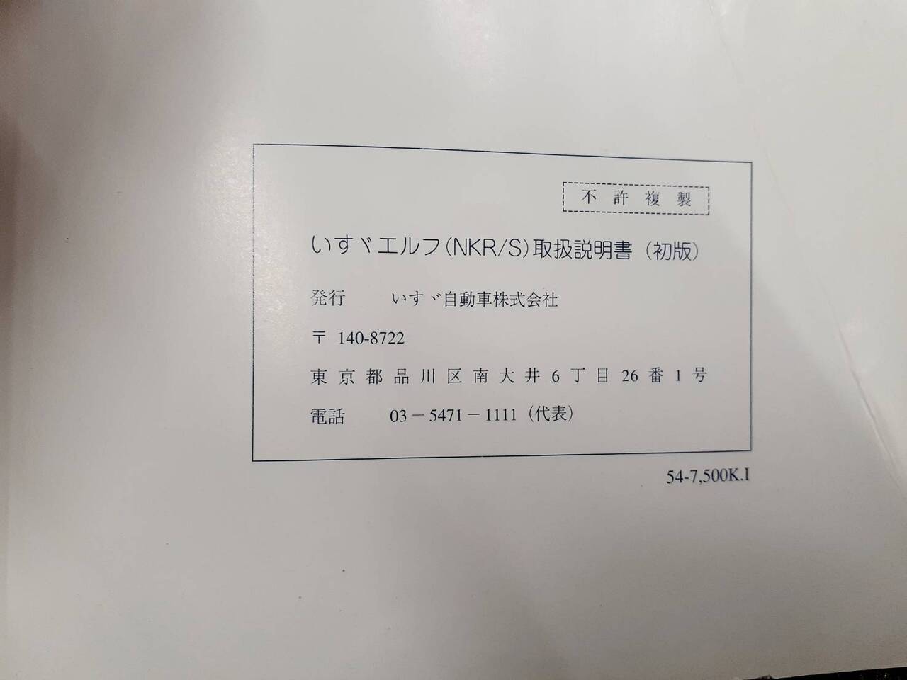 いすゞ エルフ 取扱説明書(中古)