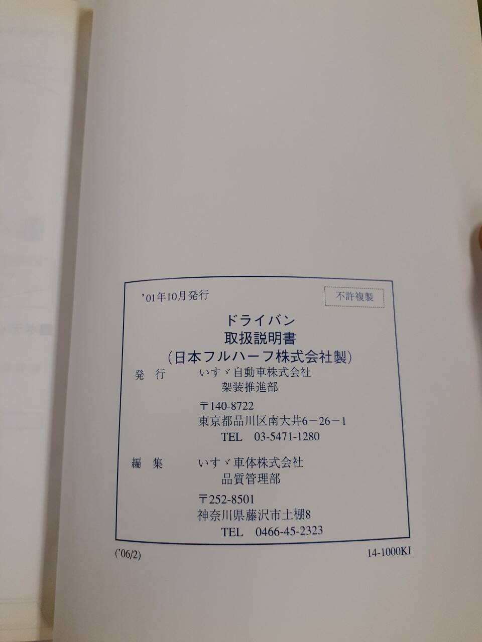 LP01-0861【北海道札幌市発】ISUZU★ドライバン取扱説明書★日本フルハーフ製★FORWARD★ELF