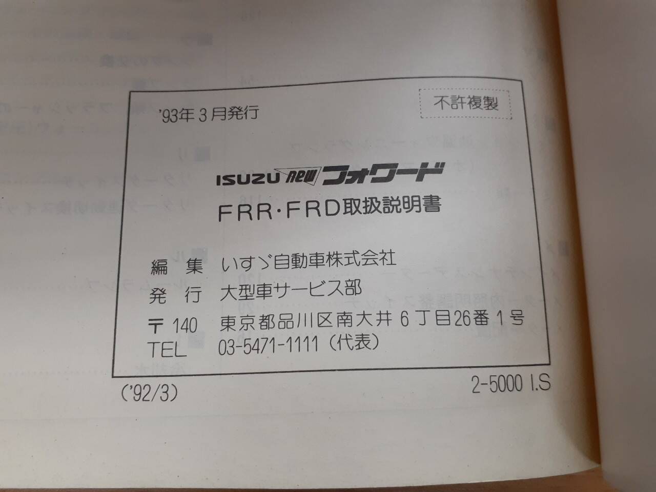 いすゞ フォワード 取扱説明書(中古)