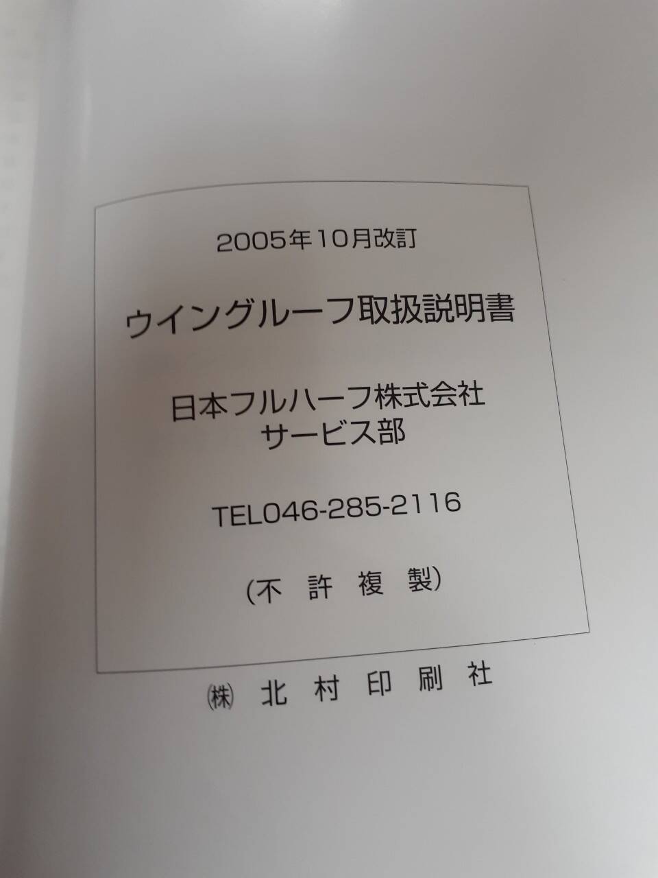 日本フルハーフ ウィングルーフ取扱説明書 中古