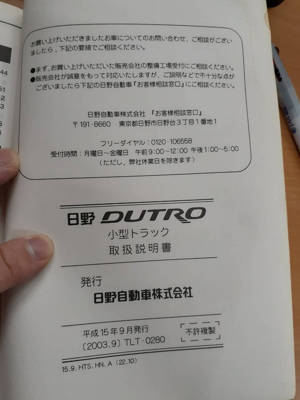 LP06-0905【兵庫県神戸市発】HINO★DUTRO★取扱説明書★デュトロ★取説