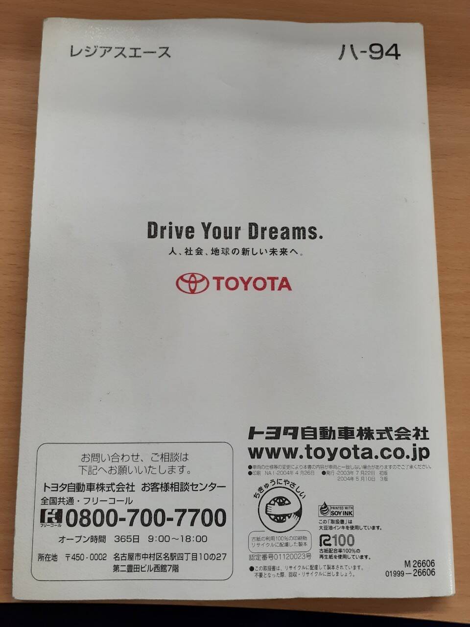 LP06-0907【兵庫県神戸市発】TOYOTA★REGIUSACE★取扱書★レジアスエース