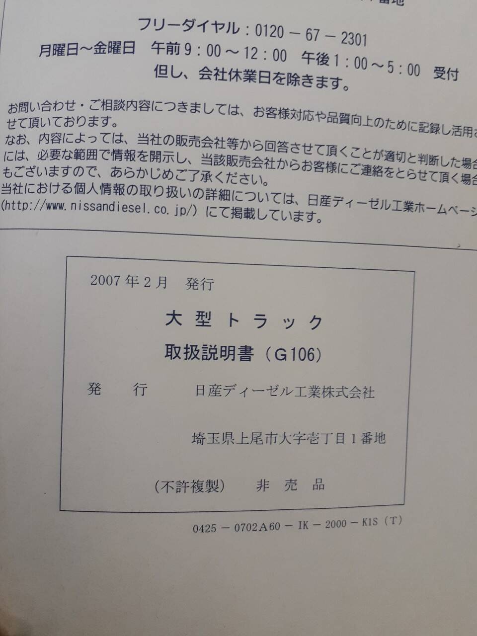 日産 クオン 取扱説明書(中古)