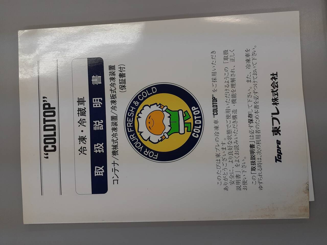 東プレ COLDTOP 取扱説明書(中古)